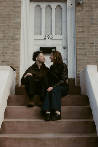 Engagement session beginning at their Brooklyn home, followed by a trip to their local pizza parlor, Nitehawk Cinemas and Prospect park.